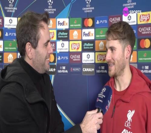体育播报1月22日宣 欧冠联赛阶段第7轮,利物浦客场3比0击败马赛。赛后,利物浦中场麦卡利斯特接受了媒体的采访。