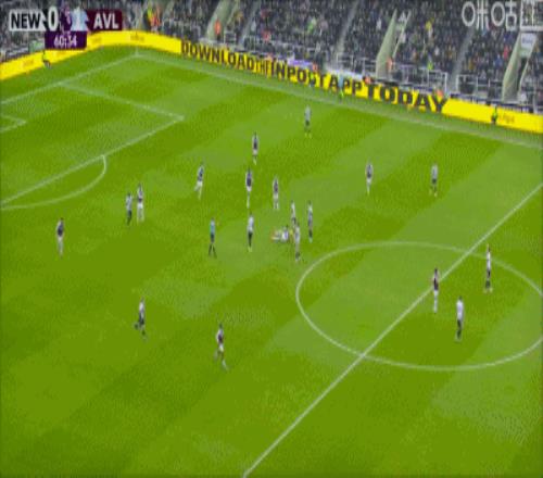 第19分钟,布恩迪亚远射破门,维拉客场1-0领先纽卡