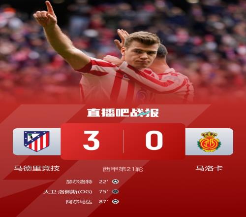 马竞3-0击败马洛卡,仍居积分榜第三;阿尔瓦雷斯继续着自己的进球荒。