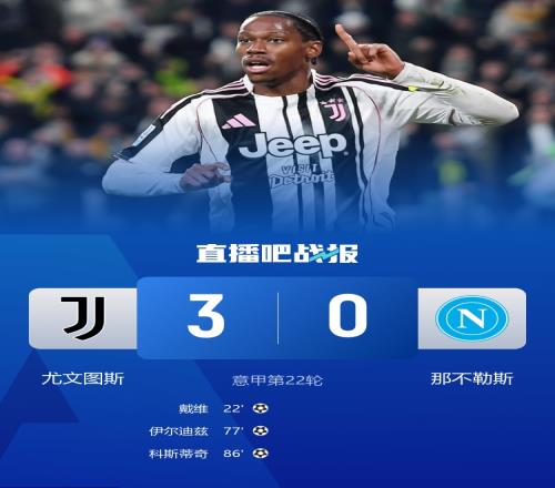 尤文3-0击败那不勒斯,终结那不勒斯6轮不败,暂升积分榜第四。