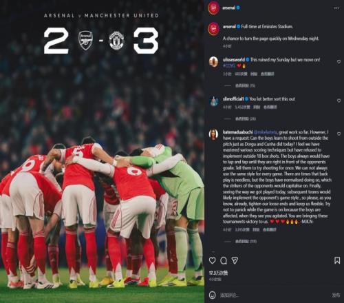 体育播报01月26日宣 本轮英超,阿森纳2-3遭曼联绝杀,联赛近3轮2平1负。赛后,阿森纳社媒发布战报,配文称:周三晚上我们将迎来一个迅速翻开新的一页的机会。