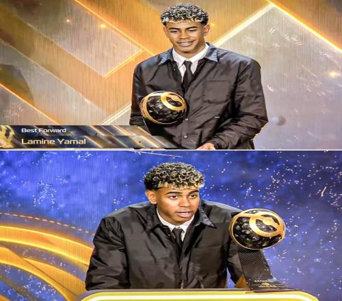 在去年年底进行的环球奖颁奖典礼上,亚马尔还曾在获得最佳前锋奖的获奖感言中提到了C罗,并表示: