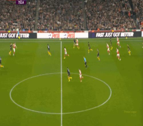 你说这有没有效,当然还是有的,比如在阵型拉得更开之后,阿森纳通过边路形成的进攻效果确实提升了半个档次: