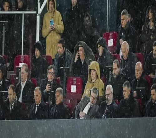 拉波尔塔表示:“我们早就料到下雨天会被淋湿,因为看台的遮雨棚还没建好。我认为自己应该和大家一起淋雨,这场雨打了所有人一个措手不及。我没准备雨伞,也算是在诺坎普现阶段的施工中完成了一场特殊的洗礼。”