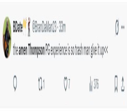 火蜜:阿门-汤普森在进攻方面太没用了。他完全破坏了球的运转节奏,因为他在球场上的任何位置都不具备威胁性,只有在篮下才有威胁。