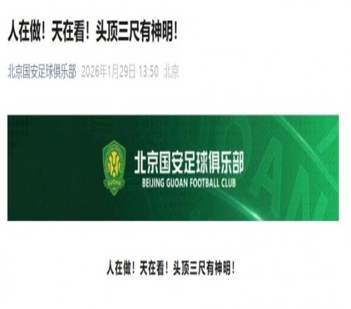 发布仅1小时!国安已删除"人在做,天在看!头顶三尺有神明"动态